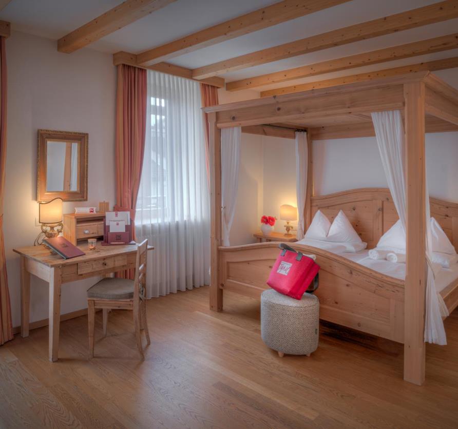 Die Classic Doppelzimmer sind durch ihre Grösse ab 23m² sehr beliebt. Balkon mit Dorf- und Bergblick. Zimmerausstattung: Doppelbett oder Himmelbett, ...